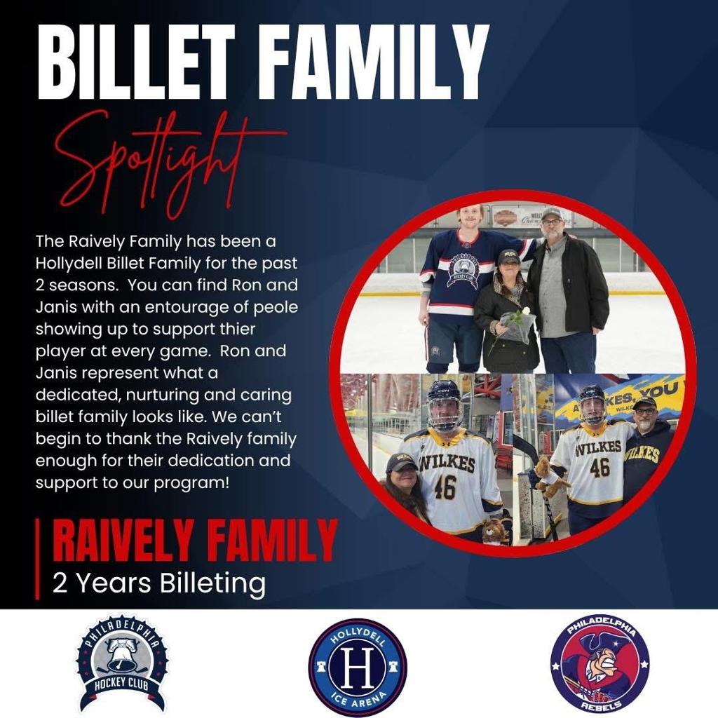 A: Most of the time, billet families, players, and the player’s family develop very special bonds and remain close long after the player has left the Philadelphia Rebels. We do our very best to ensure that this experience is rewarding for both the player and the billet family members.